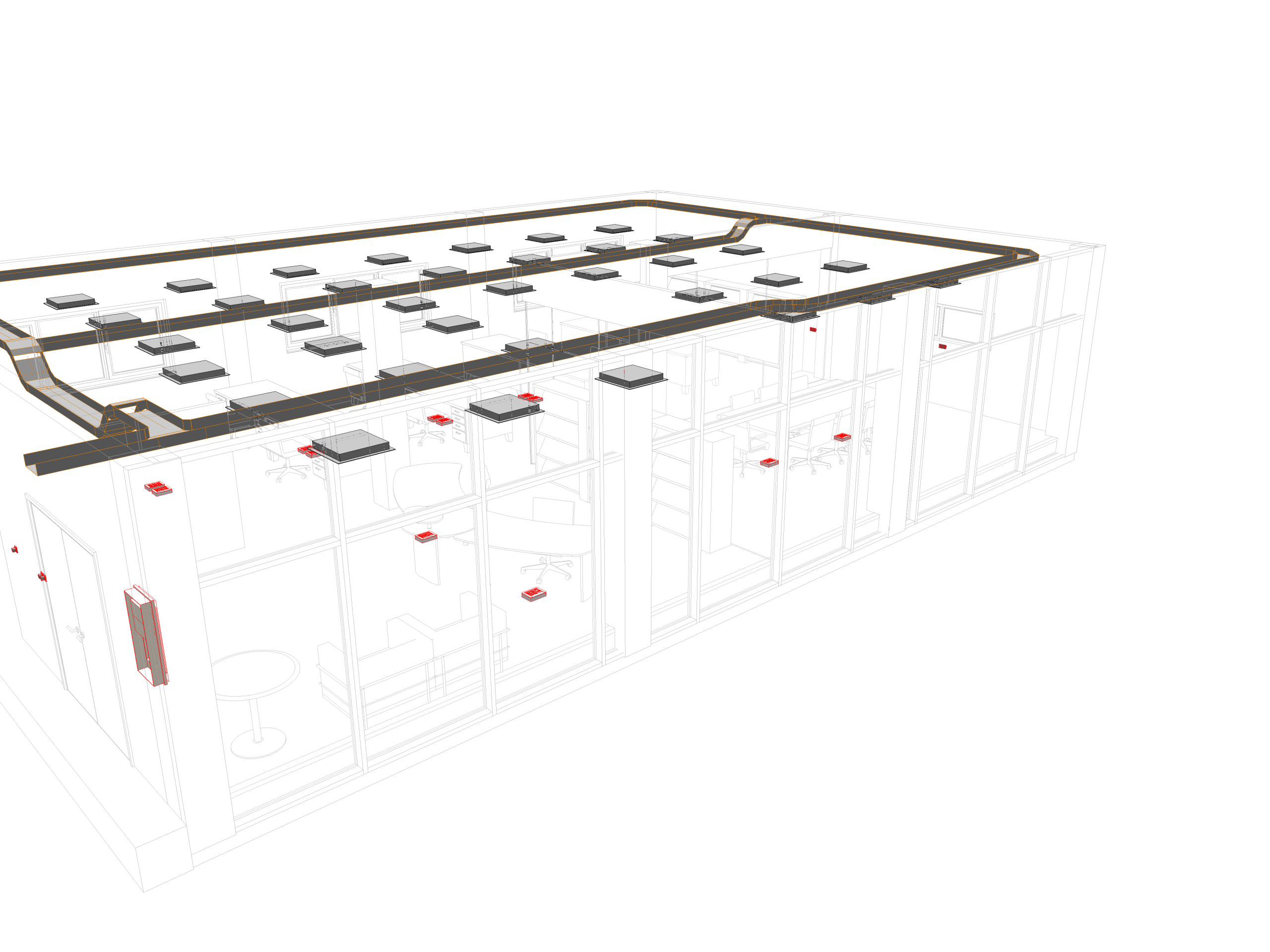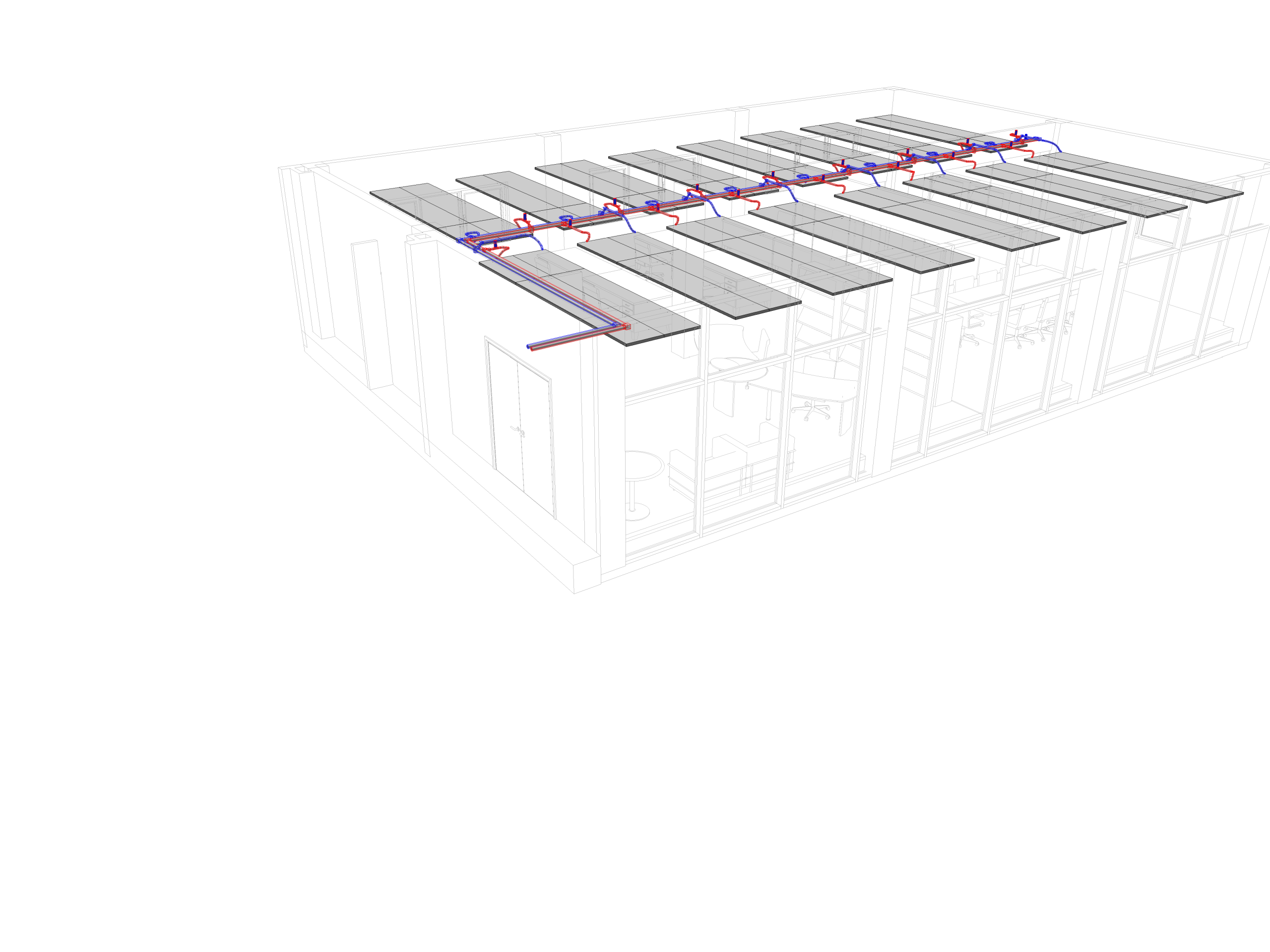 Example office project developed in BIM workflow by discipline. Designed to create a concept focused on the possibilities of installations applicable in this type of construction.