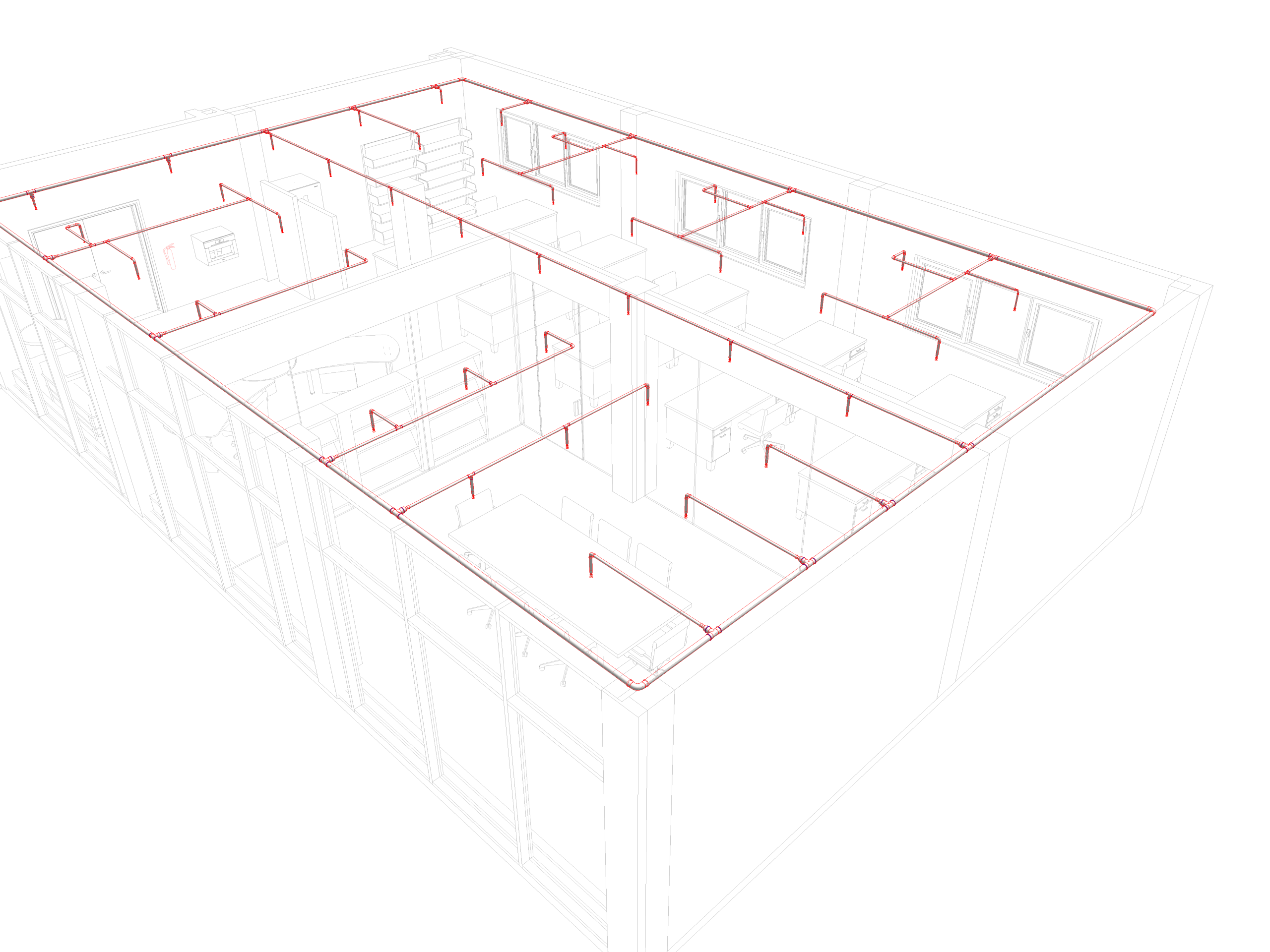 - Fire protection: Installation of sprinklers in common areas and offices. Provision of smoke detectors and fire extinguishers.